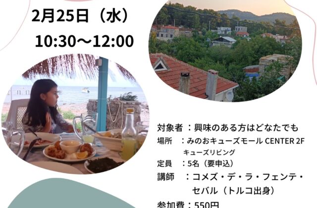2/25【ことばから見えてくるその国の文化と生活 トルコ語編】@みのおキューズモール参加者募集