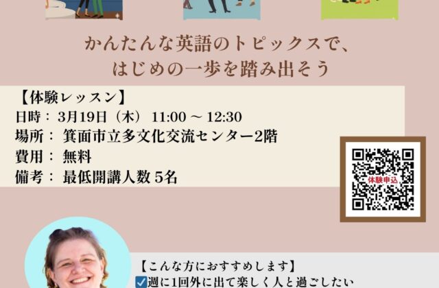 4月から新しく開講する「マリナさん初心者英会話サークル」の体験レッスンを開催します!