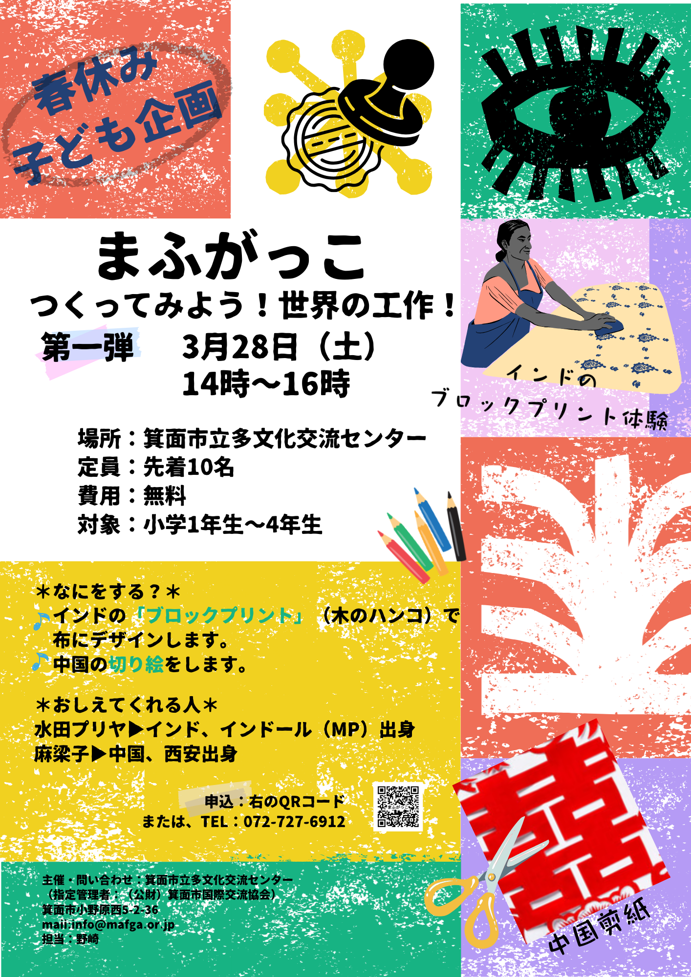 春休み企画として、インド・中国・イラン・タイの工作を、地域に住む外国人市民と一緒につくります。