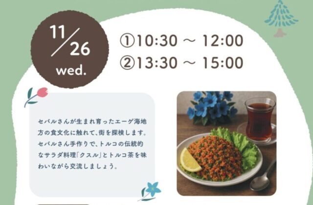 11/26食でつながる このひと、この世界 「セバルさんの故郷エーゲ海地方の食文化に触れて、街を探検しましょう!」@みのおキューズモール