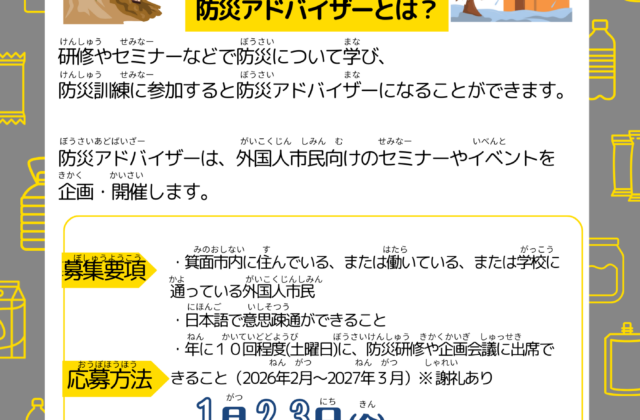 【募集終了】外国人防災(がいこくじん ぼうさい)アドバイザーを募集(ぼしゅう)します!