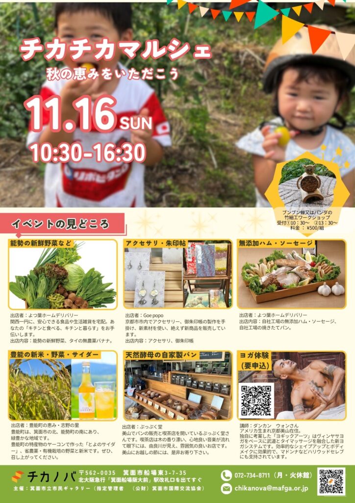 今回の出店商品は豊能町の特産物のヤーコンで作った「とよのサイダー」、省農薬・有機栽培の野菜と新米です。ぜひ、召し上がってください!