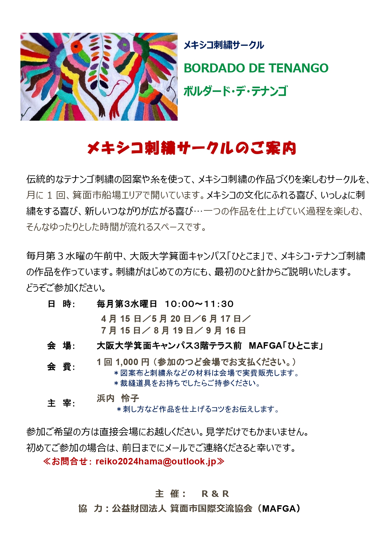 メキシコ刺繍サークルの案内「ボルダード・デ・テナンゴ」