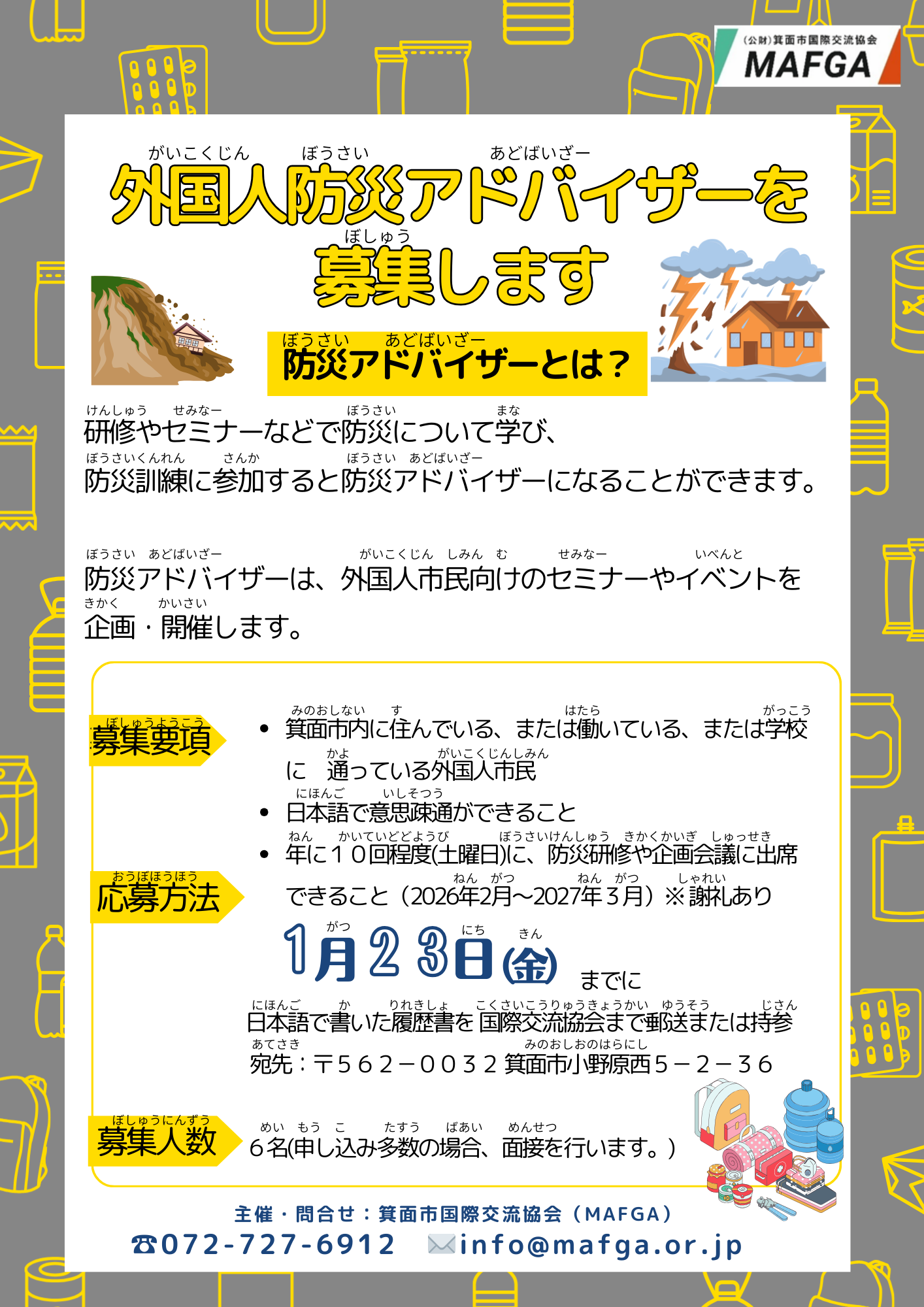 外国人防災(がいこくじん)アドバイザーを募集(ぼしゅう)します!