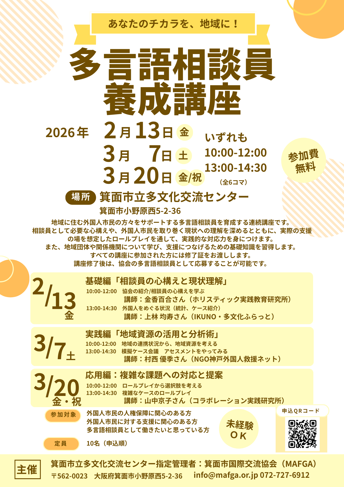 地域に住む外国人市民の方々をサポートする多言語相談員を育成する連続講座です。