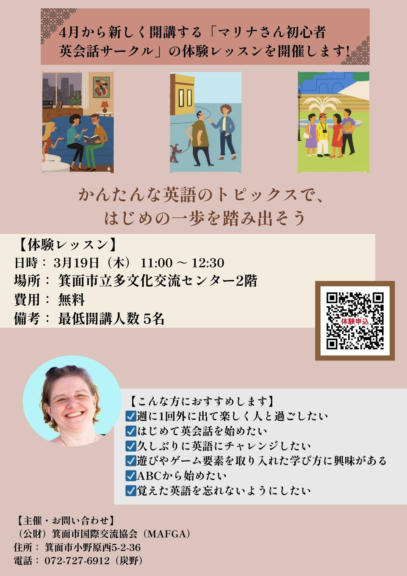 2026年4月開講!マリナさんの初心者英会話サークル